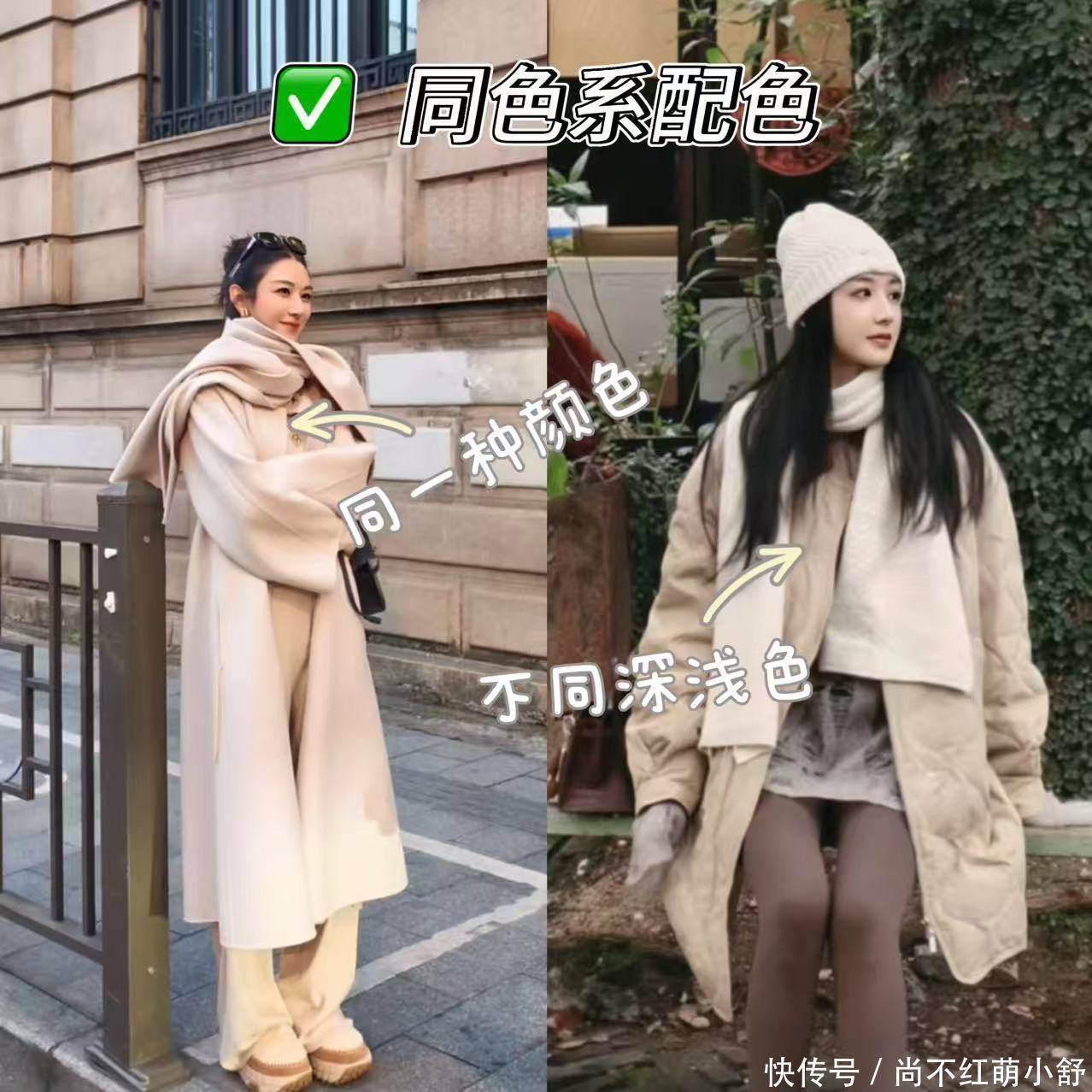 “系法都会了,为什么我还是穿不出贵气感和大牌感?”问题可能出在配色上。而色彩搭配是薇娅围巾搭配的另一个核心。这几个公式值得学习: