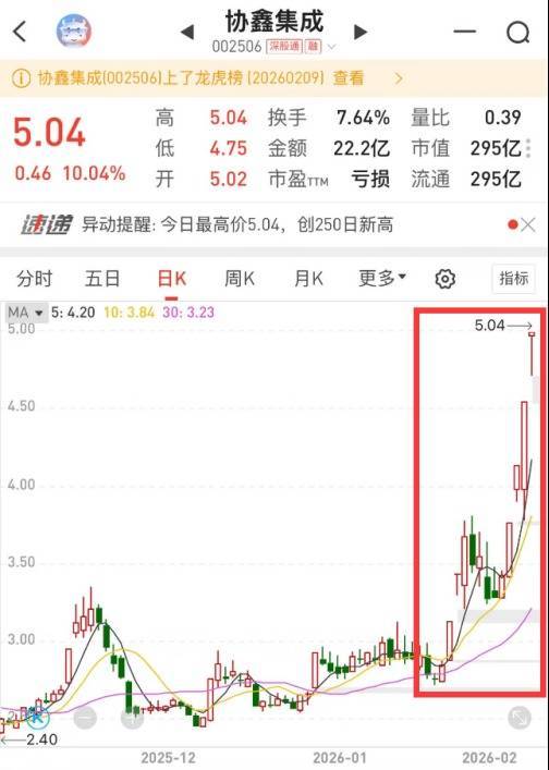 然而,资本市场的热情似乎并未被基本面拖累所冷却。2月9日,协鑫集成再度涨停,同花顺热榜数据显示,协鑫集成人气值冲榜,人气排名第7名。截至收盘,协鑫集成上涨10.04%,当日主力资金买入金额6.40亿元。当日,光伏板块掀涨停潮,苏文电能、协鑫集成、协鑫能科、亚玛顿、利源股份等16只个股集体涨停。
