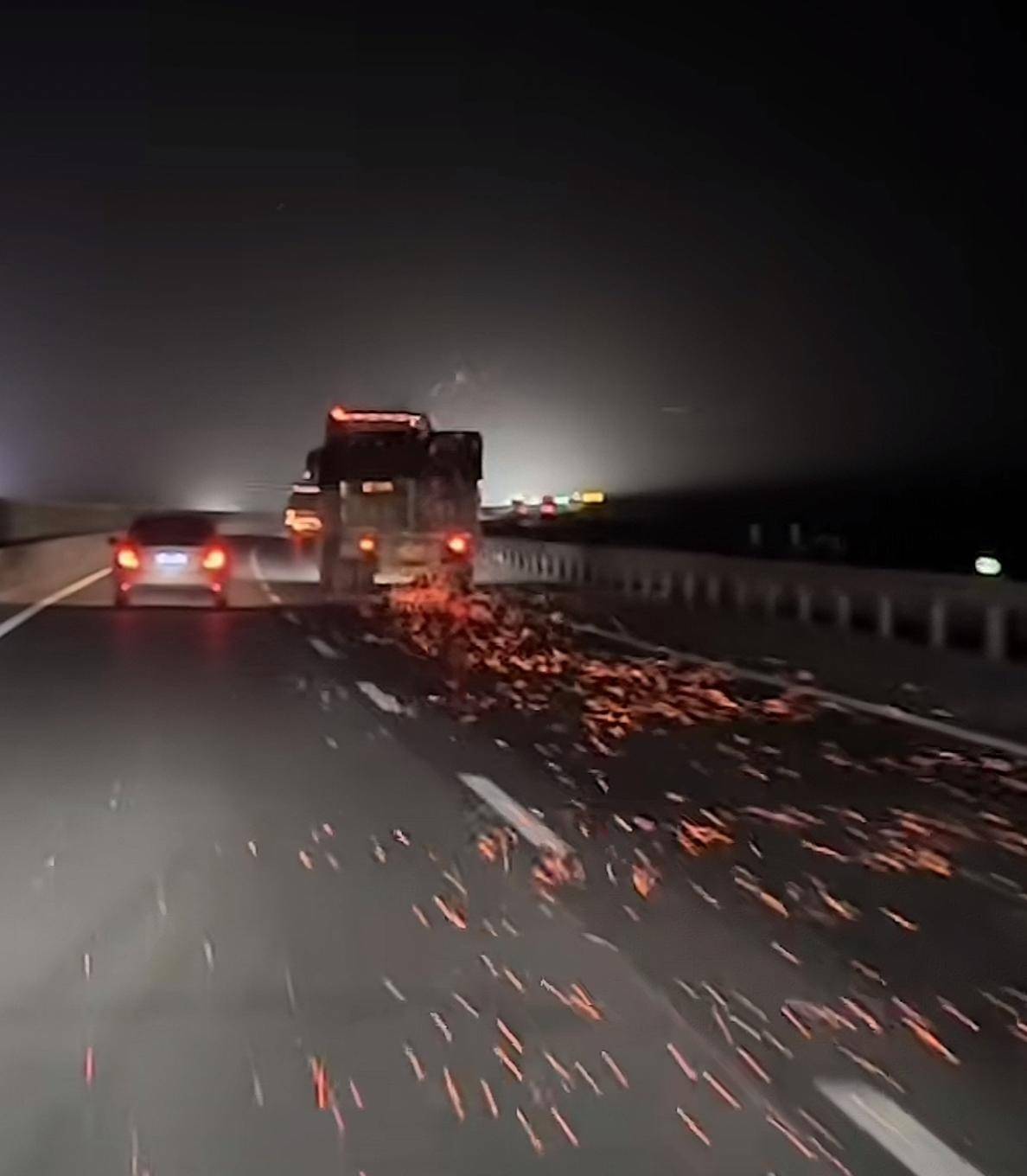 2月11日,当事人黄先生告诉潇湘晨报记者,昨晚行车在高速上看到满地的火星,没有其他车辆提醒货车着火了,他打开车窗招手提醒司机,还让朋友尝试别停货车,“别停确实比较冒险,我们车子开了双闪,周围也没有其他车辆,能够保证自身安全。”